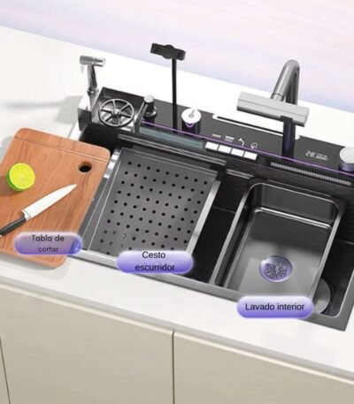 Bacha Inteligente Con Set Grifería Acero Plus Canilla 180°