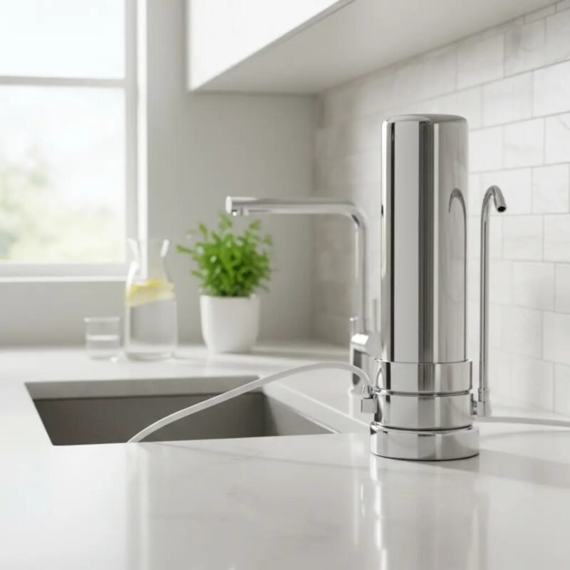 Filtro Purificador Agua Sobre Mesada 10×2.5″ 1/4″- Elimina Cloro-Olor-Sabor