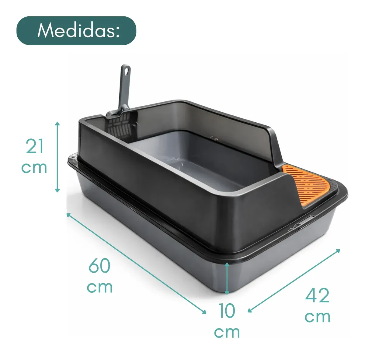 Bandeja Litera Para Gato Sanitaria Abierta Plástica Con Pala