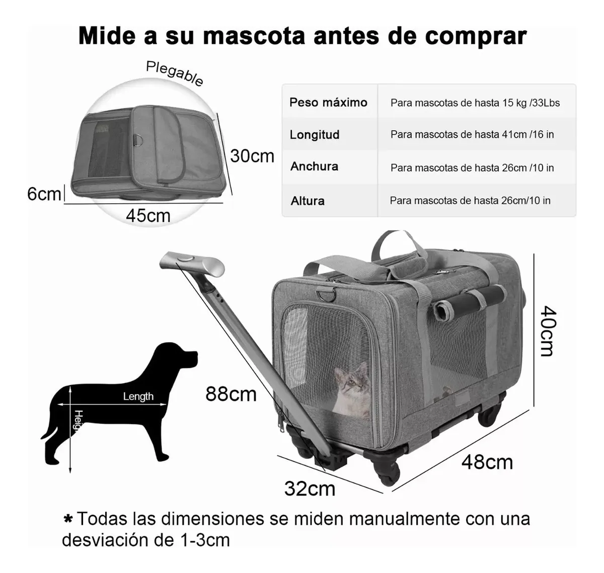 Bolso Transportador Mascotas Con Ruedas Plegable Aerolinea