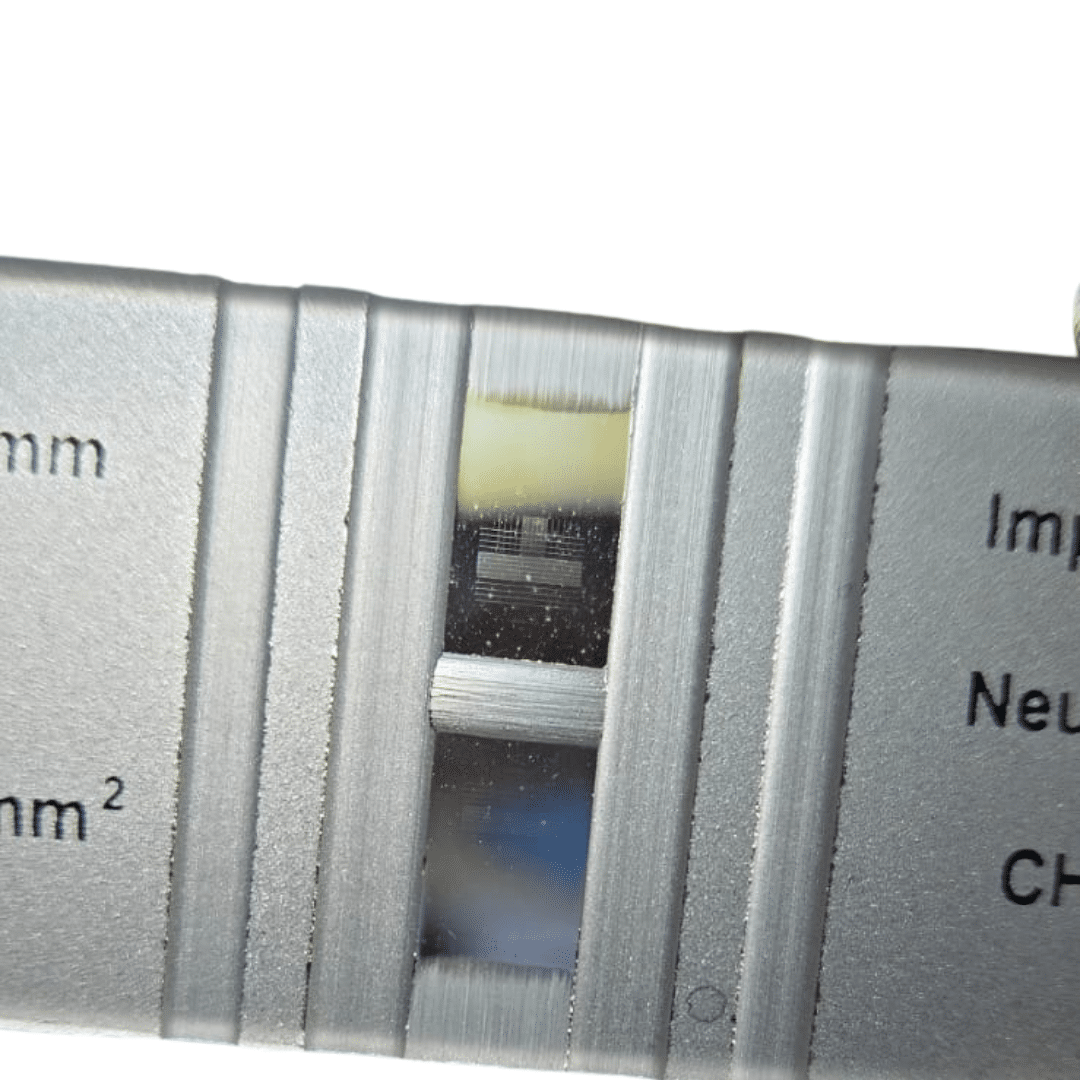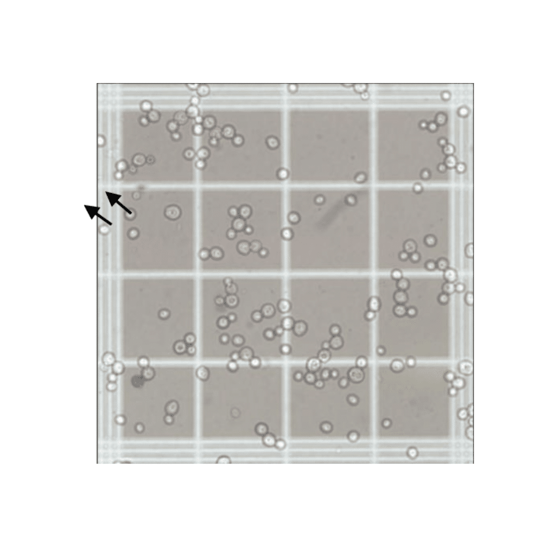 La superficie reglada está a 0,1 mm por debajo de la cubierta de vidrio y siendo la superficie de la base 1 mm2 , el volumen se limita a 0,1 mm x 1 mm2 , es decir 0,1 mm3.