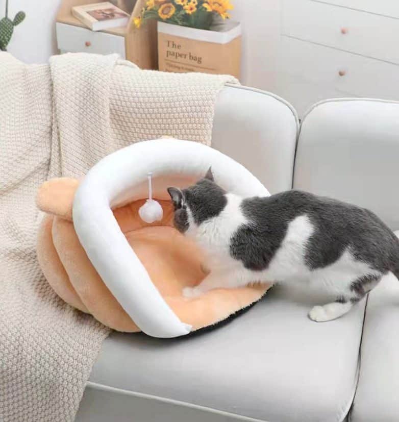 Casa Para Gato Mullida Cucha Cama Con Juguete Orejitas Beige Cueva