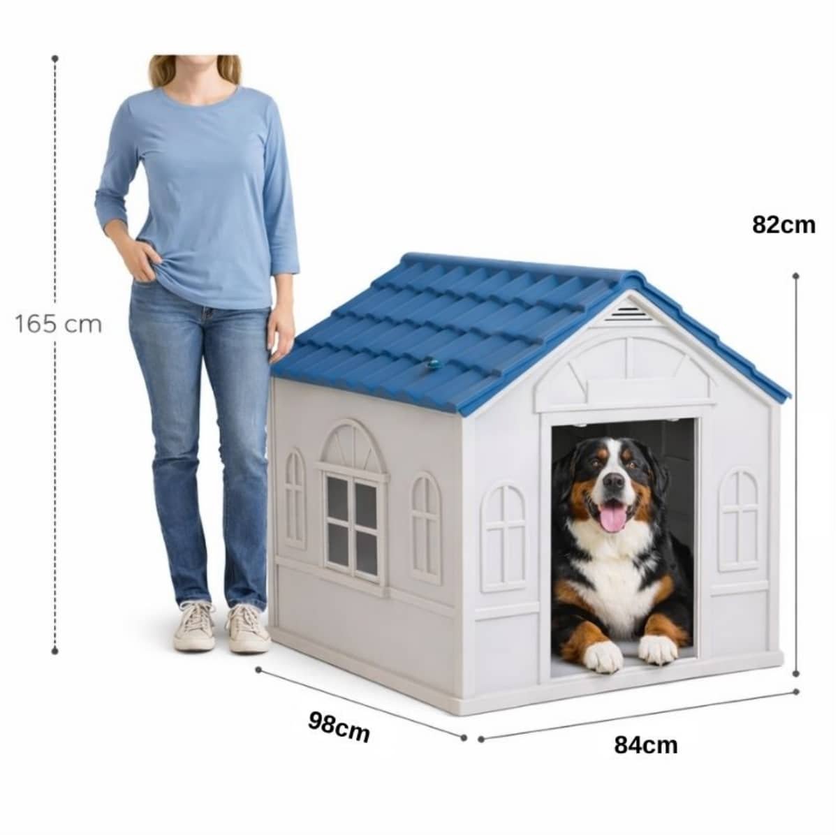 Casa Cucha Perro Grande Exterior con Techo a Dos Aguas Plegable No19 Azul marino