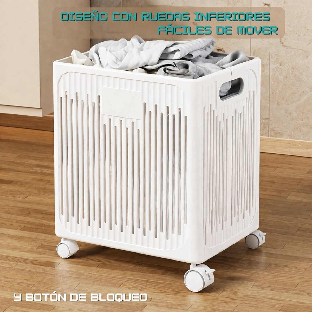 Cesto Canasto Ropa Sucia Plástico Plegable Con Ruedas