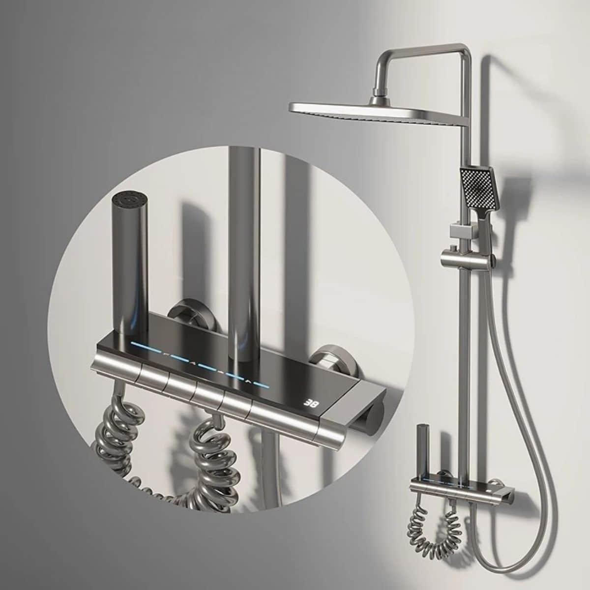 Columna de Ducha Inteligente Monocomando panel digital chico Gris MS083