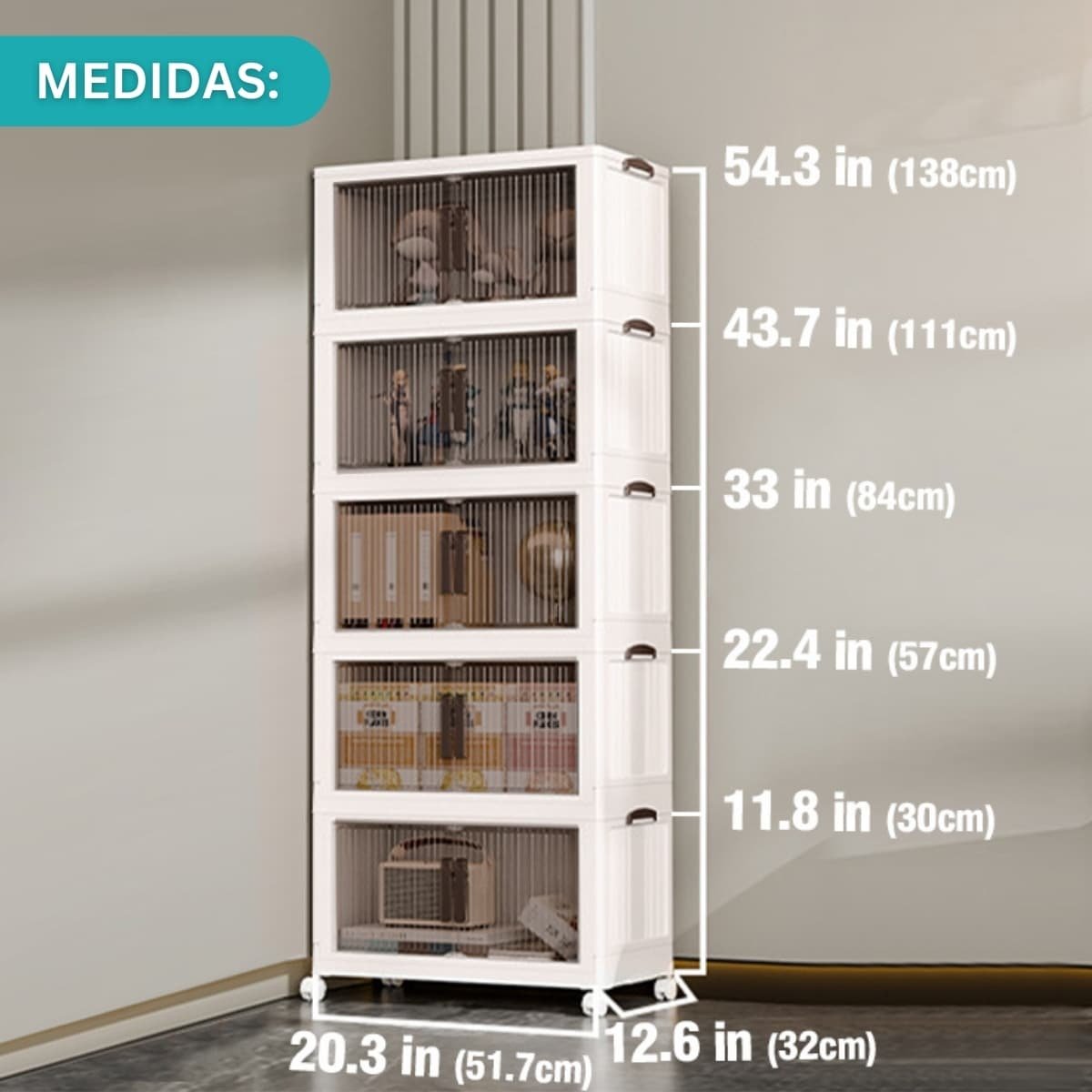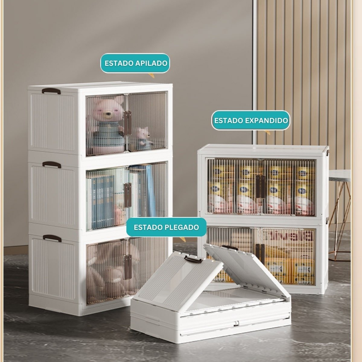 Optimiza tus espacios con este Contenedor Plástico Plegable de 5 niveles, diseñado para mantener el orden en tu hogar u oficina.
