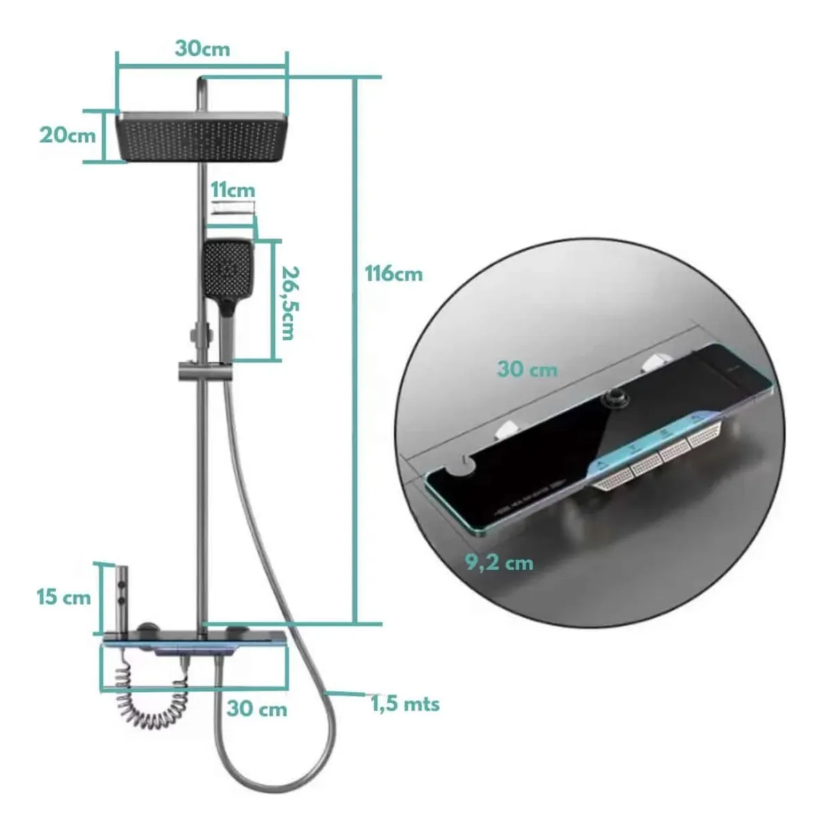 • Ducha superior + mango ajustable: versatilidad para personalizar cada experiencia.