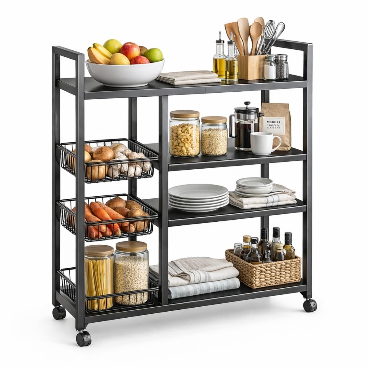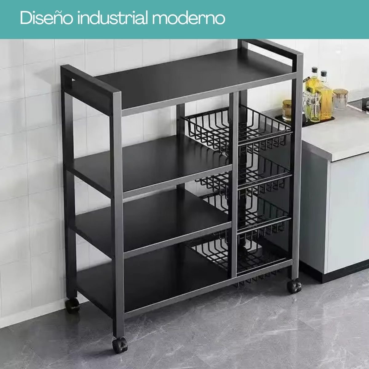 Optimiza tu cocina y hogar con la estantería rack industrial organizador 4 niveles de metal negro 108cm. Gracias a su diseño robusto y multifuncional, combina resistencia, estilo y practicidad. Por lo tanto, se convierte en la solución perfecta para mantener cualquier espacio ordenado.