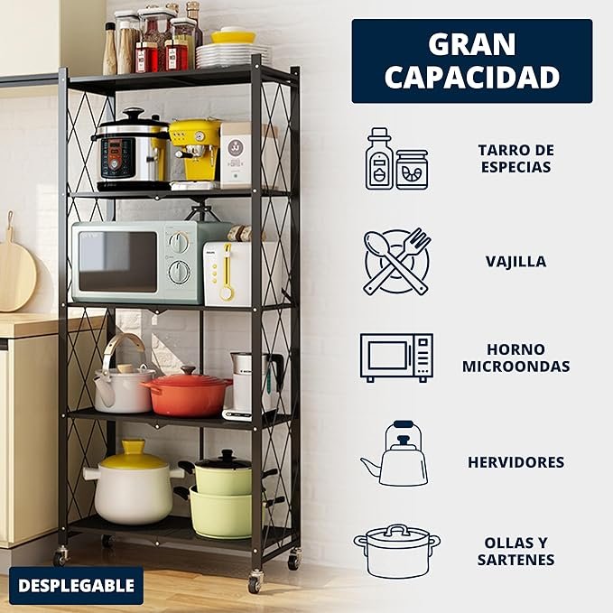 Estanteria Plegable 5 Niveles Metal Biblioteca Cocina