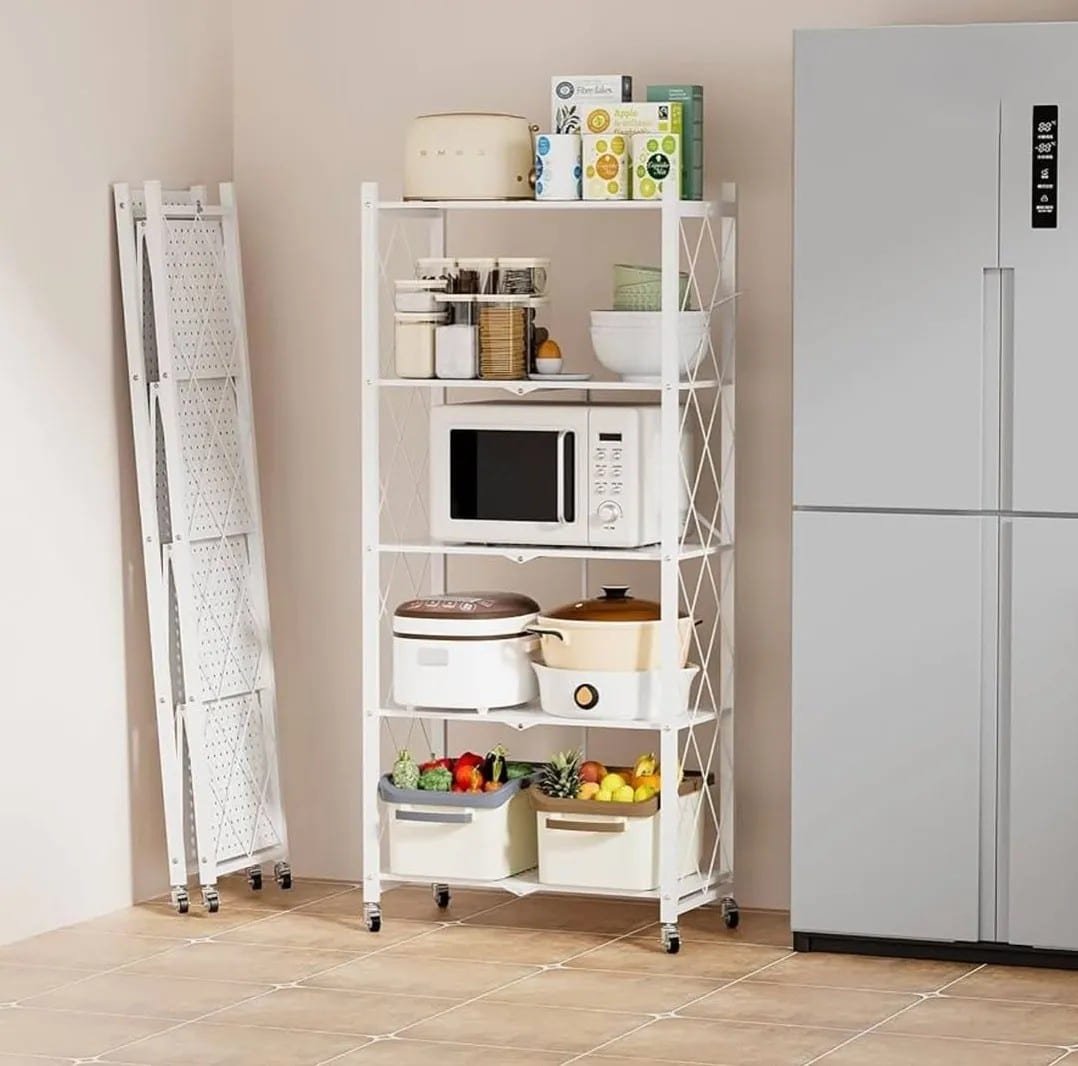 La estantería plegable de 5 niveles es una solución práctica y moderna para organizar cualquier ambiente.