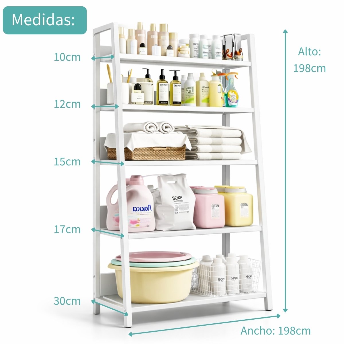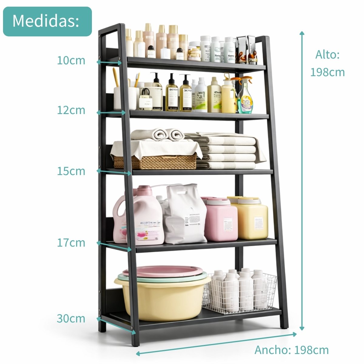 - 5 niveles metálicos resistentes para mayor capacidad.