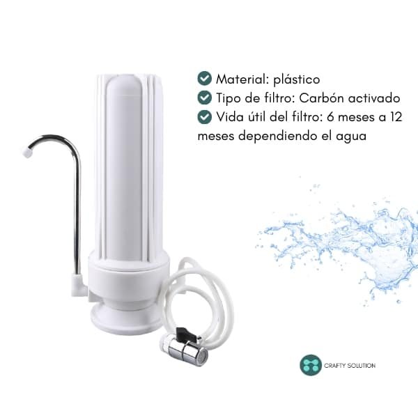 Características Destacadas: Filtro purificador de agua con carbón activado, ideal para colocar sobre la mesada. Disfrutá de agua de calidad directo de tu grifo.