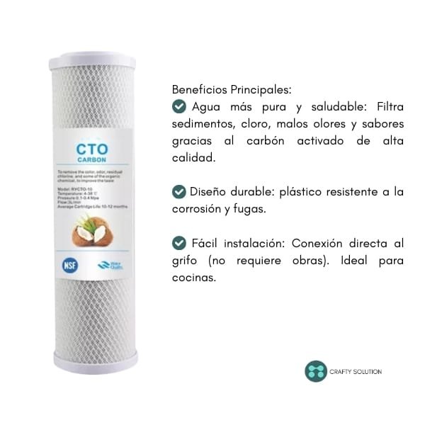 - Agua Pura y Saludable: Elimina sedimentos, cloro, malos olores y sabores gracias al carbón activado de alta calidad.