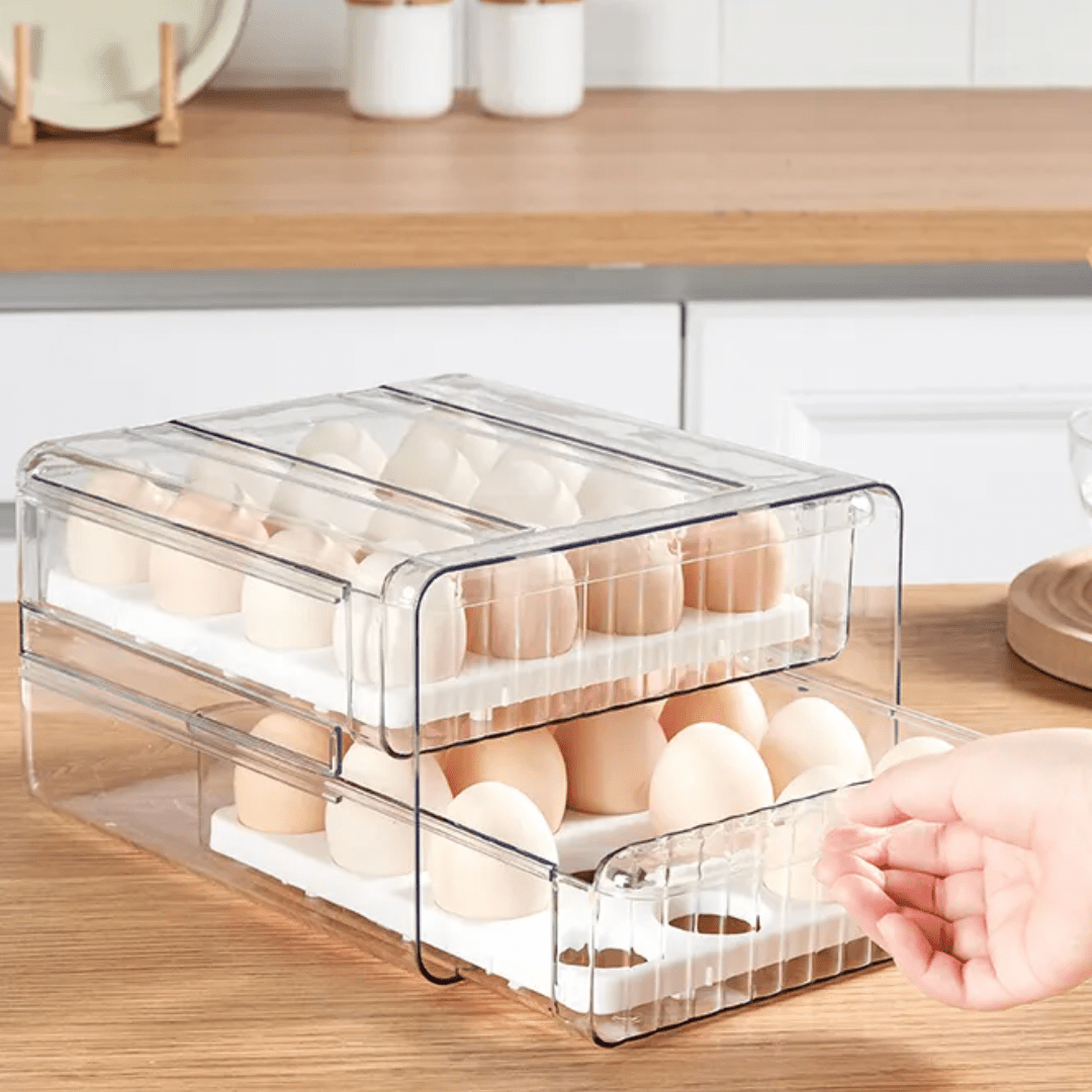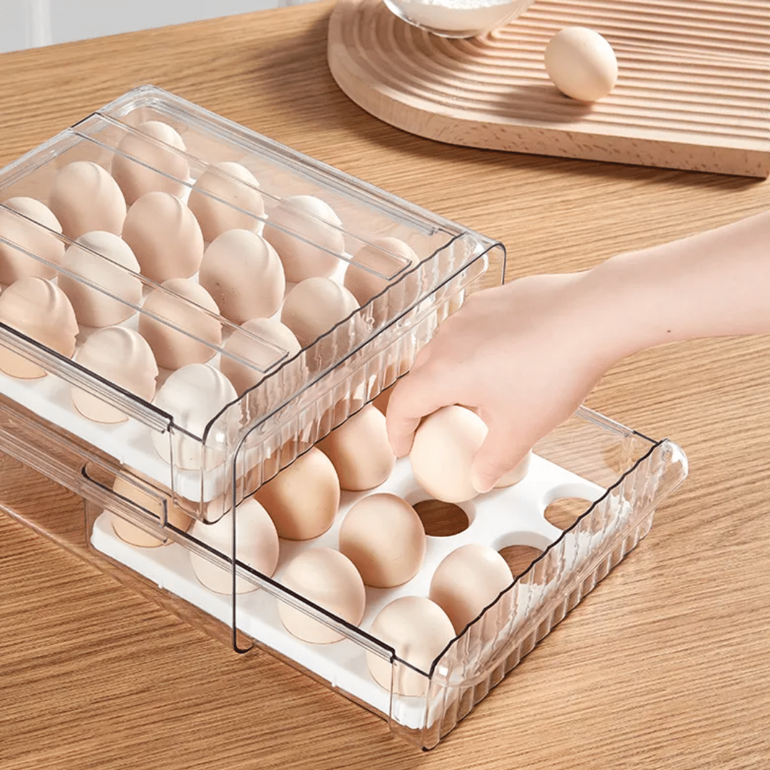 Huevera grande con cajonera acrílica: 32 huevos