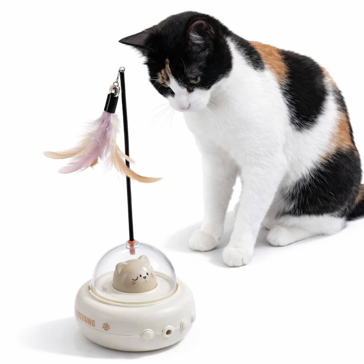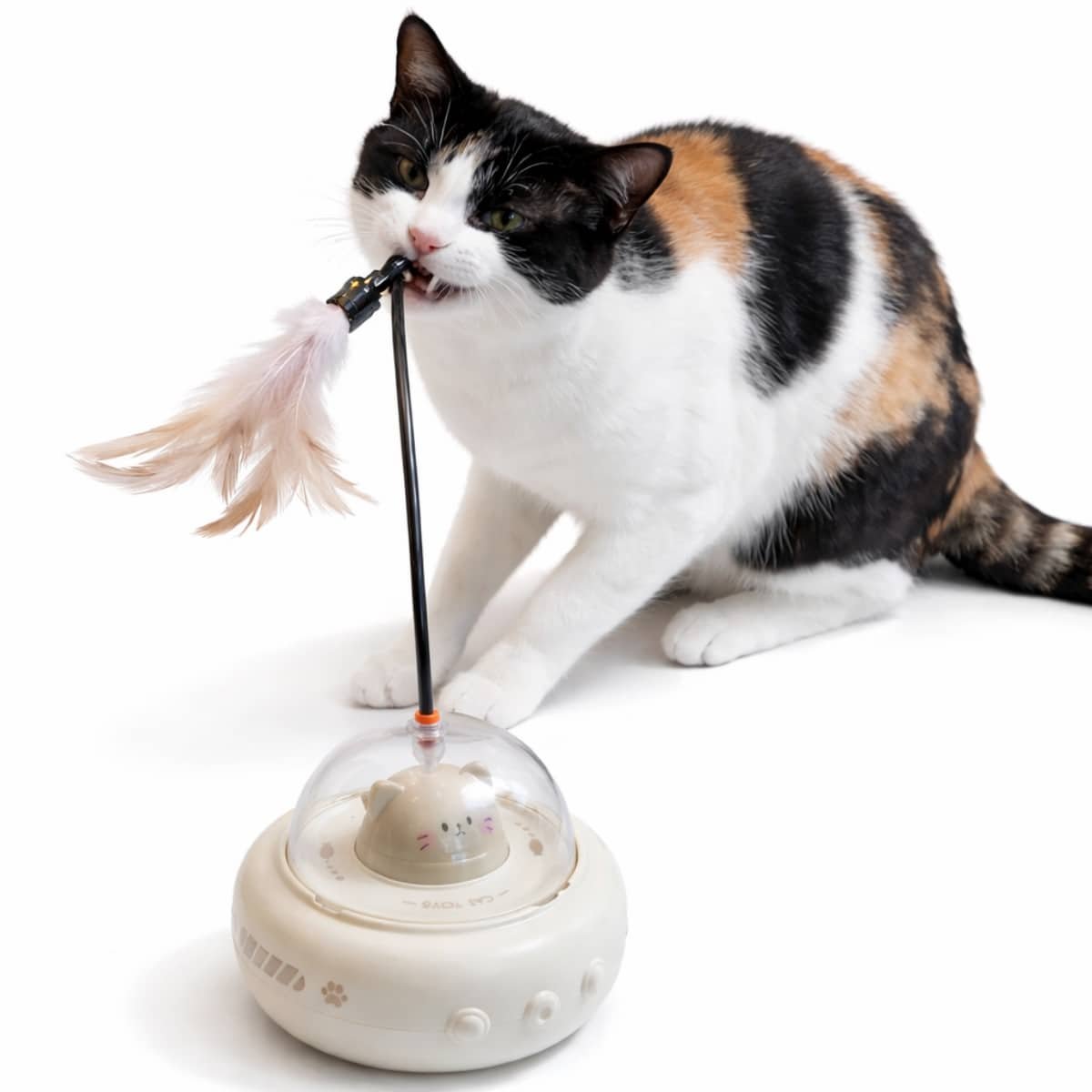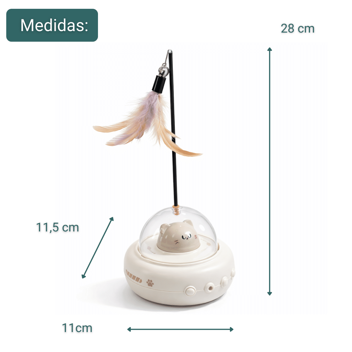 Incluye una pluma para estimular a los gatos