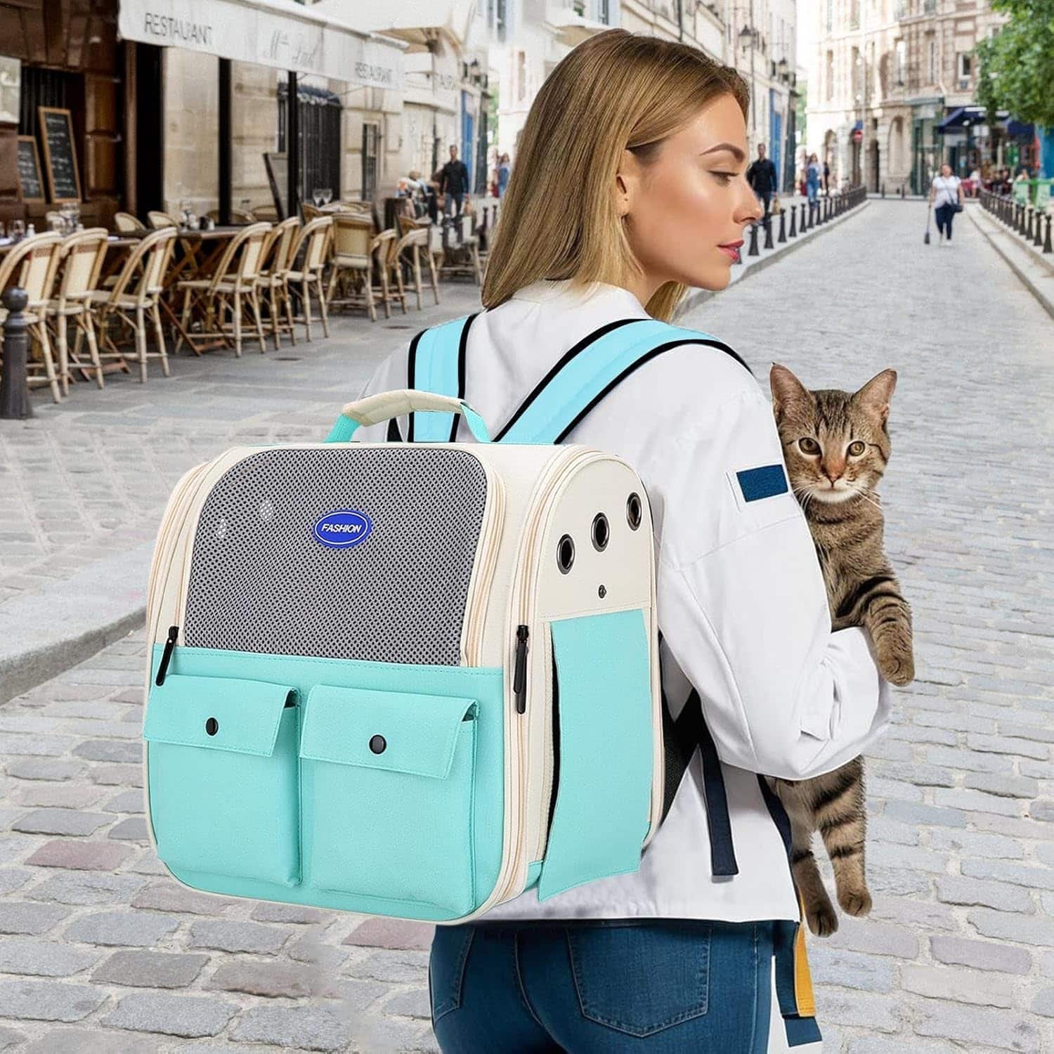 Mochila Transportadora Mascotas Gato Perro Con Bolsillos