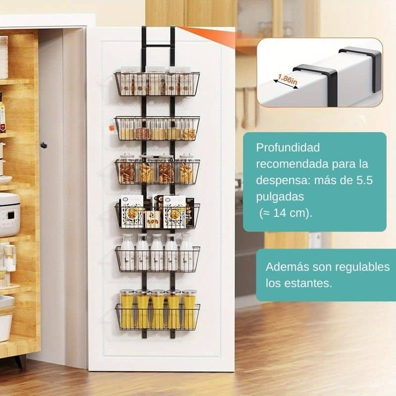 Organizador de despensa sobre la puerta – 6 niveles ajustables, metal plegable sin montaje