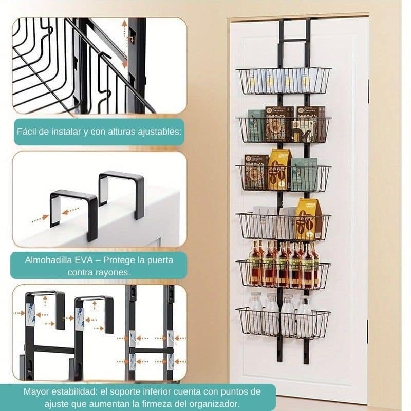 El Organizador de puerta Multiuso 6 niveles aprovecha el espacio vertical con gran capacidad,