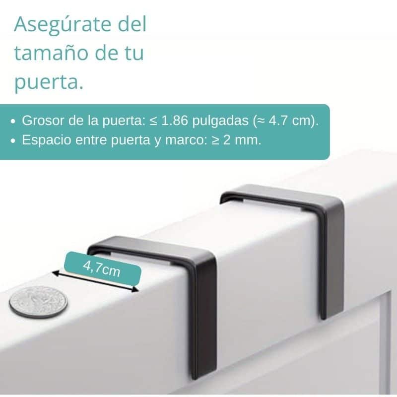 - Compatibilidad del gancho: puertas de hasta 5,33cm de grosor y marcos 0,2 mm.