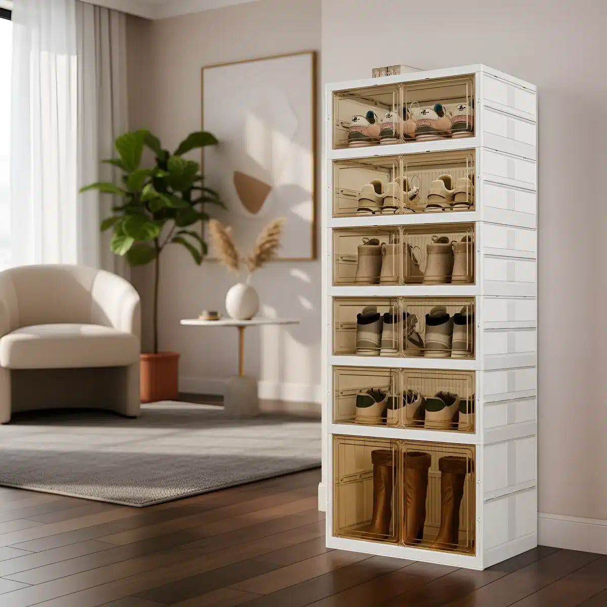 Este Organizador Zapatos Doble Plegable es la solución perfecta para mantener tus espacios ordenados y funcionales. Además, gracias a su diseño moderno y práctico, ofrece seis niveles con puertas, lo que lo convierte en una opción ideal para almacenar calzado y otros objetos personales. Asimismo, está fabricado con materiales resistentes y ecológicos, por lo que combina durabilidad, estilo y versatilidad en un solo producto.