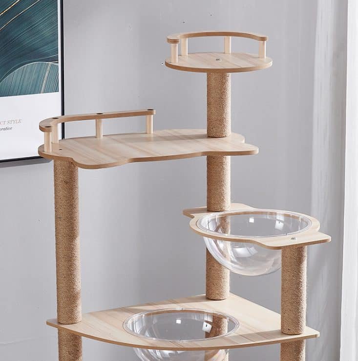 Tenemos para ofrecerte el rascador gimnasio torre casita para gatos de gran tamaño, ideal para que tu mascota juegue, descanse, trepe y afile sus garras. Su diseño multifuncional con cápsulas transparentes y múltiples niveles lo convierte en el espacio perfecto para gatos activos y curiosos.