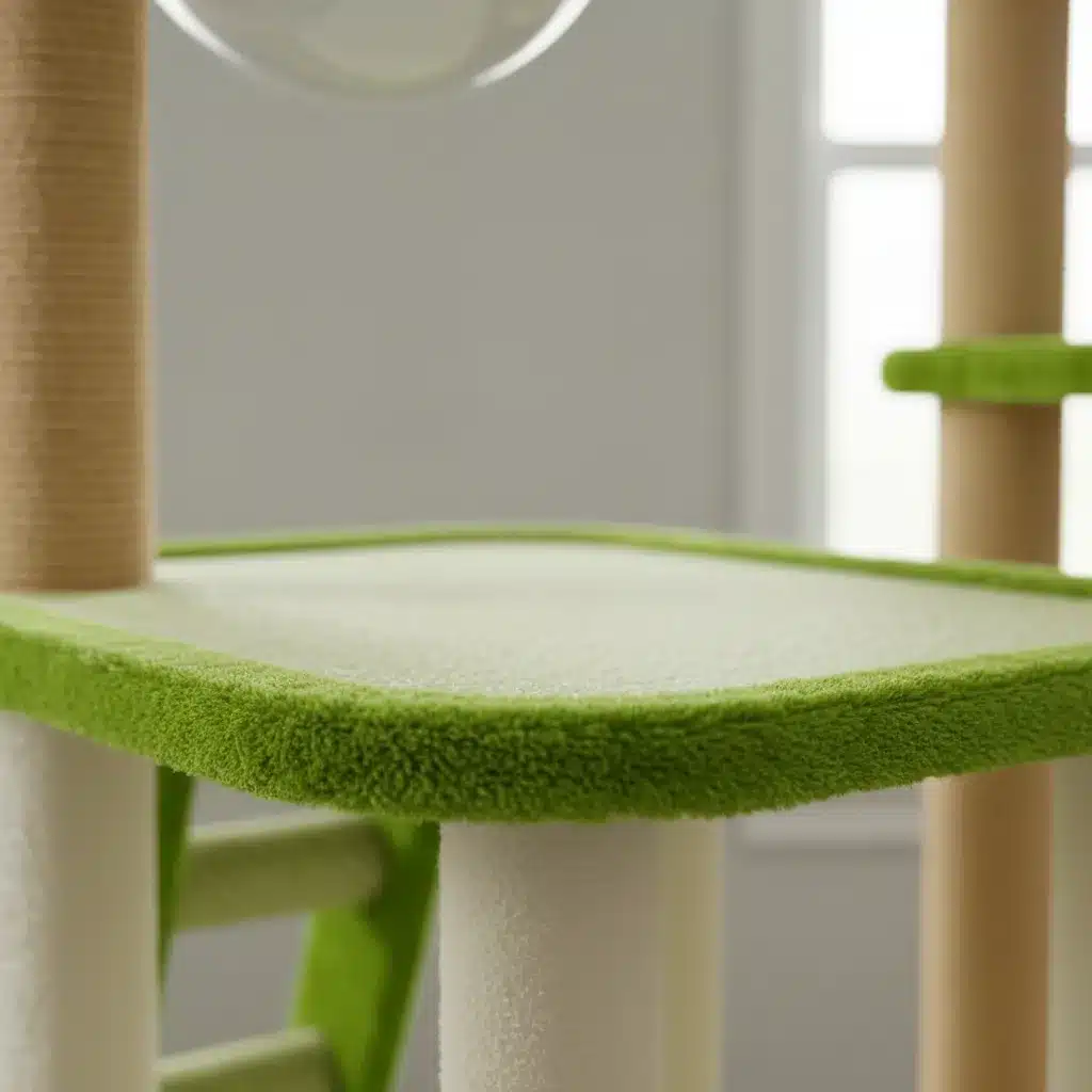 - Materiales de primera calidad: base de aglomerado resistente, postes cubiertos de sisal natural y plataformas acolchadas con felpa suave.