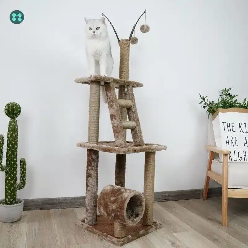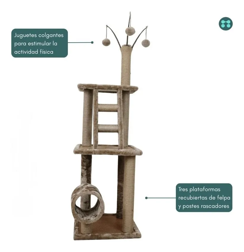 - Diseño multifuncional: Plataformas a diferentes alturas, postes rascadores y juguetes colgantes para estimular la actividad física y mental.