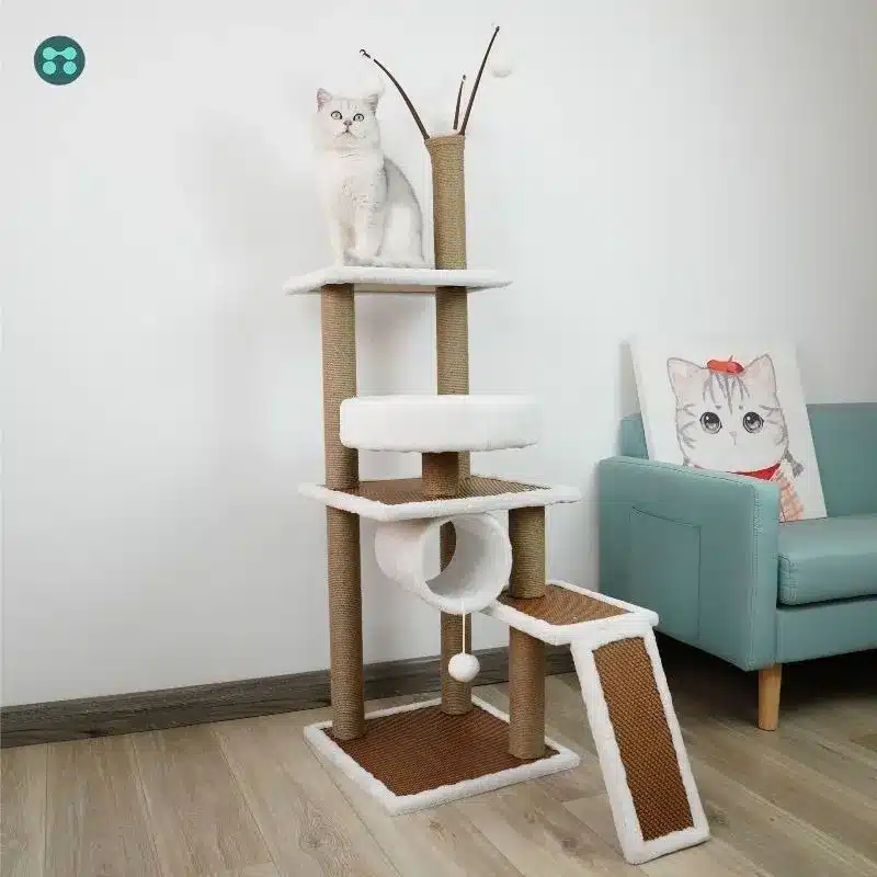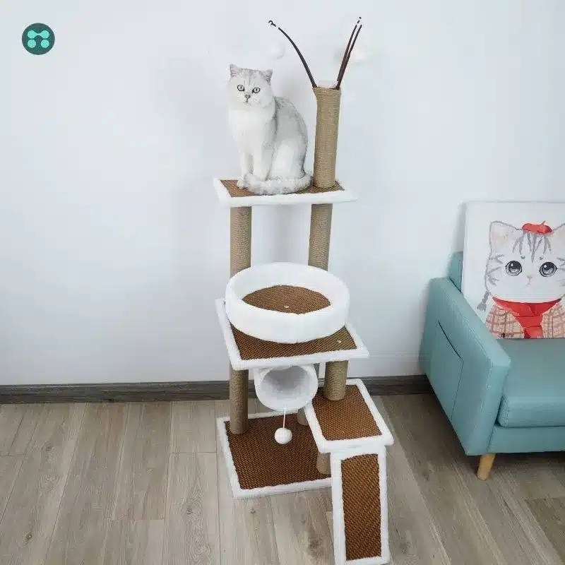 Rascador torre gatos con madera natural y plataformas