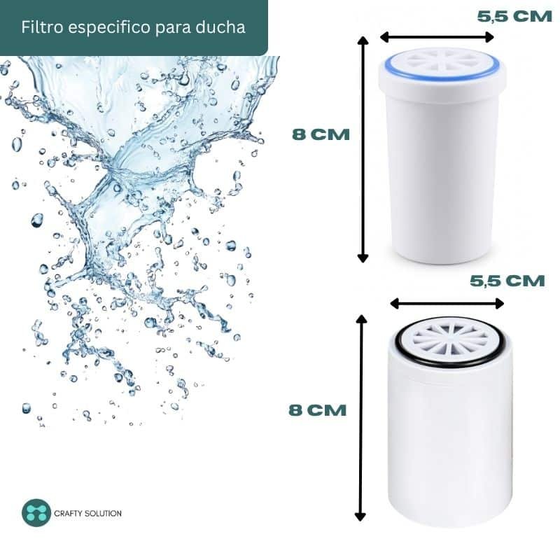 Reduce el sarro, cloro, metales pesados, impurezas del agua y evita el desarrollo de bacterias.
